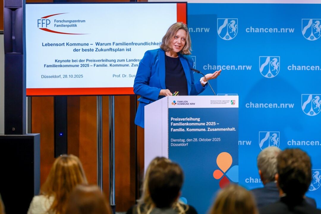 Im Rahmen der diesjährigen Preisverleihung des Landespreises Familienkommune 2025 des Landes Nordrhein-Westfalen war Frau Prof. Dr. Susanne von Hehl Teil der Jury und hat als Keynote Sprecherin zum Thema „Lebensort Kommune – Warum Familienfreundlichkeit der beste Zukunftsplan ist“ die familienpolitische Bedeutung der Kommunen betont. Alle Akteure müssten heraus aus ihrer Komfortzone. Bund und Länder müssten die kommunale Ebene zudem deutlich intensiver unterstützen als bisher.
